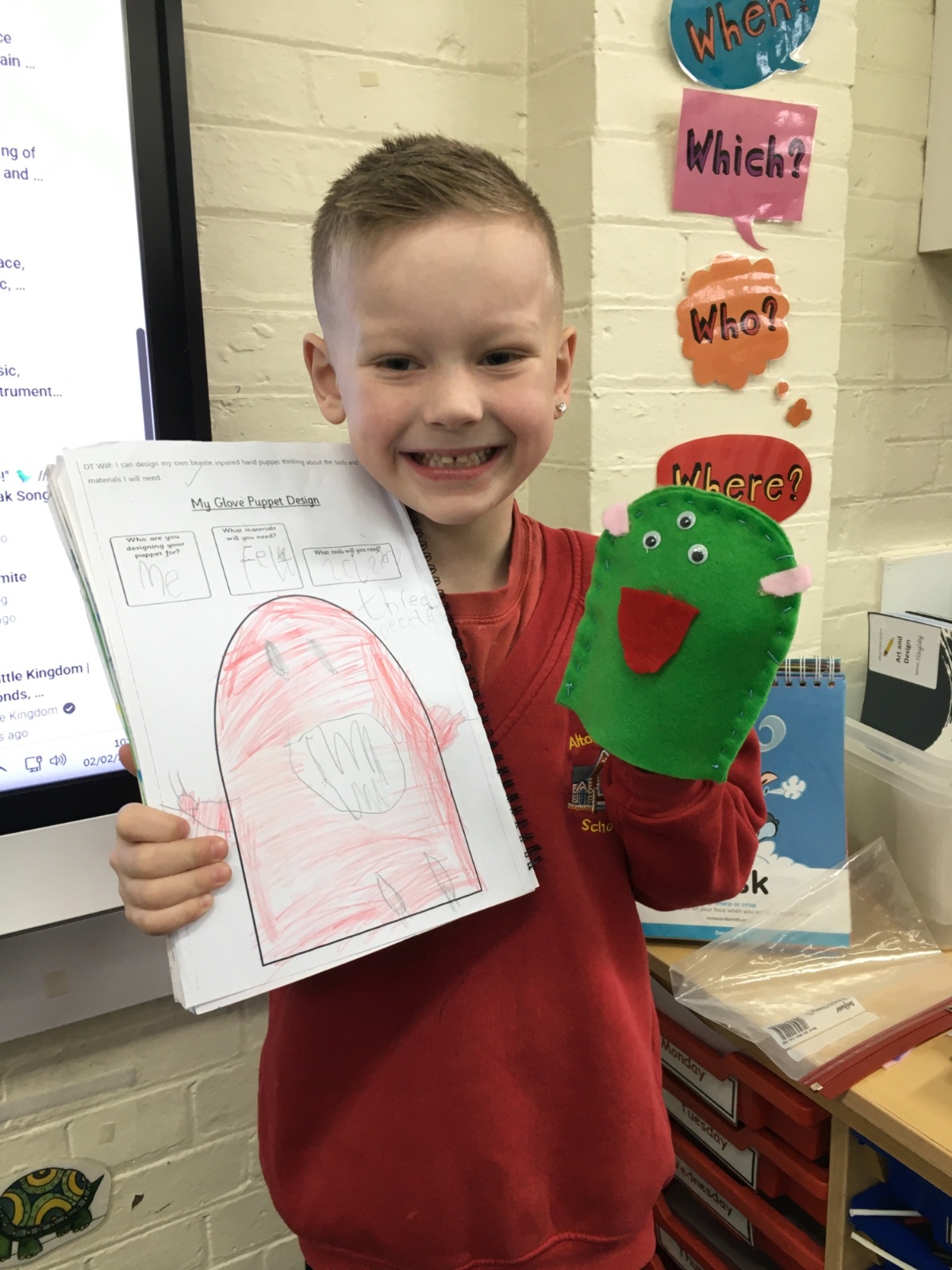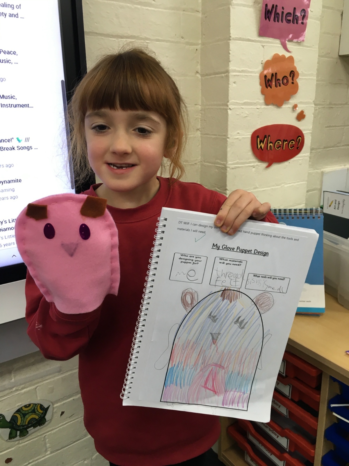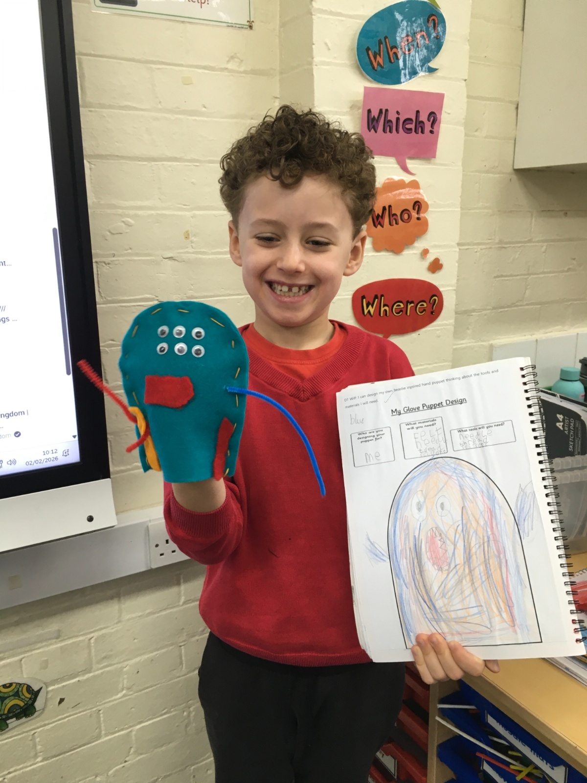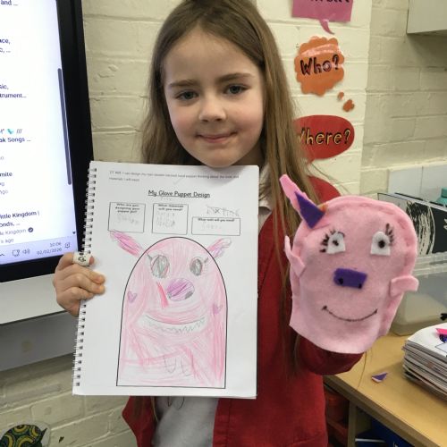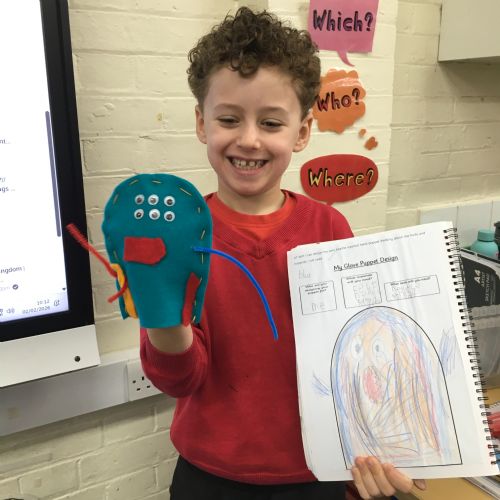 In DT this Half Term the children designed, sewed and decorated a hand puppet.