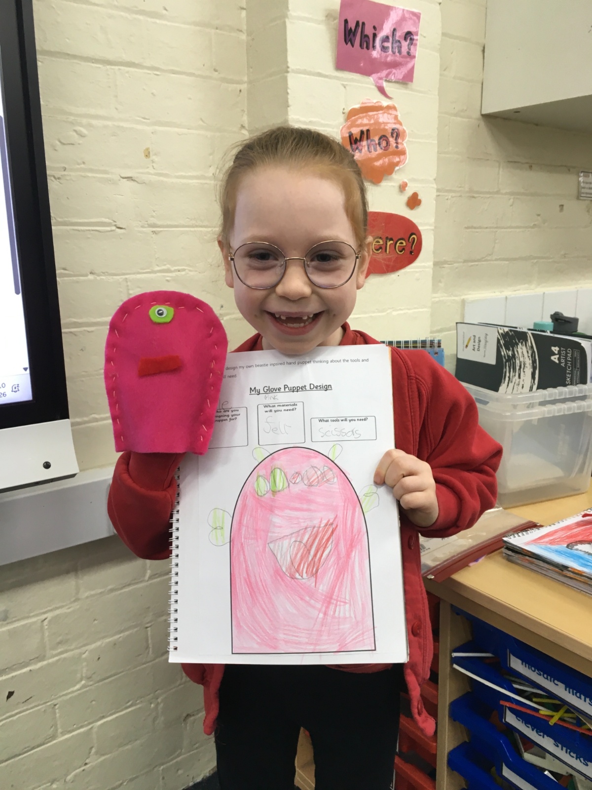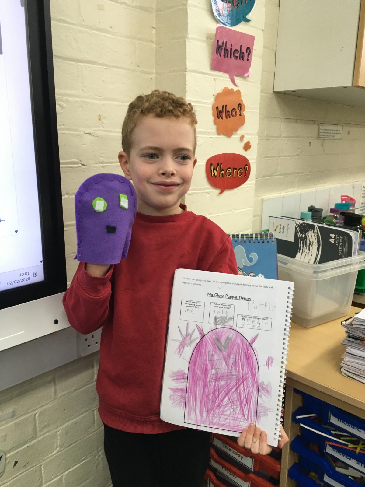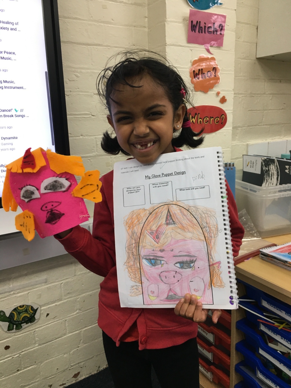 In DT this Half Term the children designed, sewed and decorated a hand puppet.